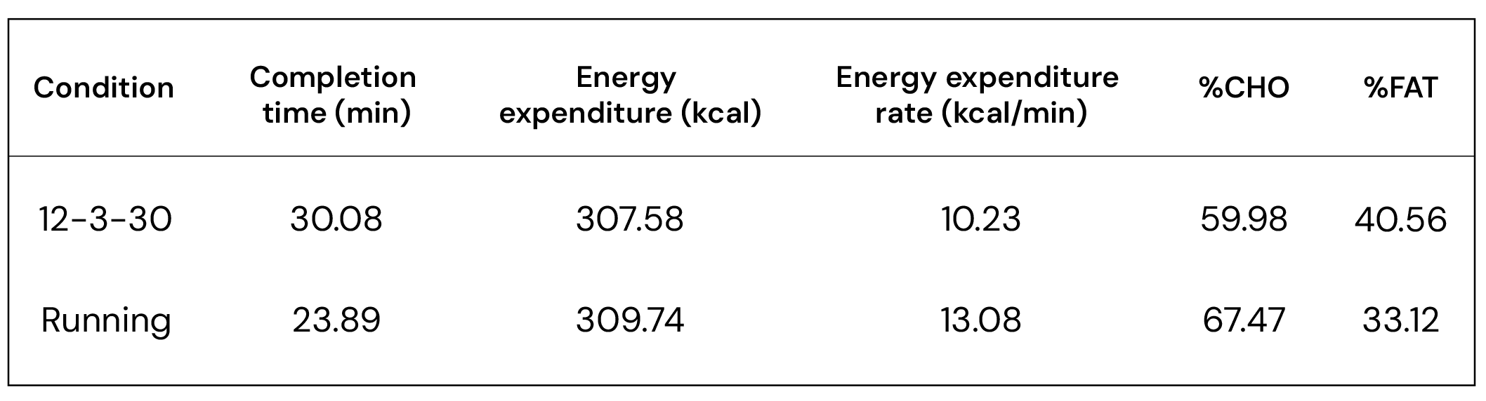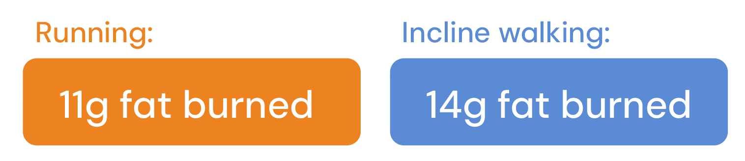 So yes, lower-intensity cardio does burn a larger proportion of fat. But fat burning in the short-term tells us nothing about whether you’ll actually lose body fat. Why fat burning doesn’t mean fat lossYour body is constantly burning and storing fat. For example, when you wake up and delay breakfast for a few hours, your body breaks down stored fat for fuel. Later, when you eat, your body doesn’t need to rely on internal stores because it has energy coming in from an external source (food) - it will use whatever it needs and store the rest. This process goes on and on and on until the day you die. What dictates whether you lose or gain fat is the net fat balance over time – are you storing more fat than you’re burning? And your energy balance dictates your net fat balance. If you’re consistently storing more energy than you burn, you’ll gain body fat regardless of how many fat-burning workouts you do. For example, Melanson and colleagues found that 24-hour fat burning did not increase when participants ate back the calories they burned. [3] A bigger issue with the fat-burning workout claim is the implicit assumption that these workouts burn enough body fat to make a meaningful difference in losing body fat. Let’s run some numbers: Sedentary overweight men and women walking at a moderate pace of about 3 miles per hour (~40 % of VO2max) burn roughly 0.3 grams of fat per minute and 0.2 grams per minute, respectively. [4] So, a 30-minute walk might burn around 8 grams of body fat – about one tablespoon of peanut butter. Hell, even walking for 2 hours would only burn 30 grams of body fat; you probably eat that amount of fat in a single meal (and you’re probably not walking 2 hours every day). Is incline walking better for fat loss than running?The ‘incline walking is better for fat loss’ hype comes from a viral TikTok because of course it does. The claim is that by walking on a treadmill with a 12% incline at a speed of 3 miles per hour for 30 minutes, you can burn as many calories as running, and because incline walking is a low-intensity activity, it can increase fat burning. Well, a study published earlier this year investigated this exact claim. [5] Here’s a quick rundown of the findings: